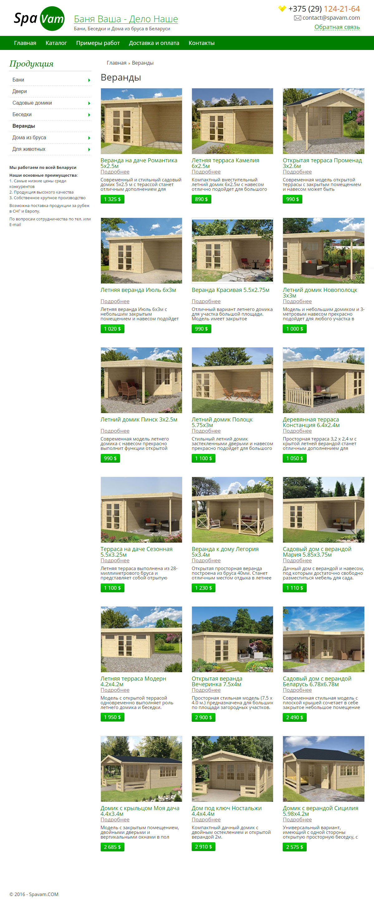 Проект SpaVam предлагает услуги по изготовлению индивидуальных проектов: Бани (готовые и индивидуальные), Садовые домики, Беседки, конструкции для животных: курятники, крольчатники, будки для собак. Отличительная черта этого проекта - то, что мы осуществляли мощную поисковую оптимизацию (SEO). В результате чего, сайт spavam.com отображается на первых страницах результатов поиска по многим высокочастотным и дорогим запросам по всей Беларуси.